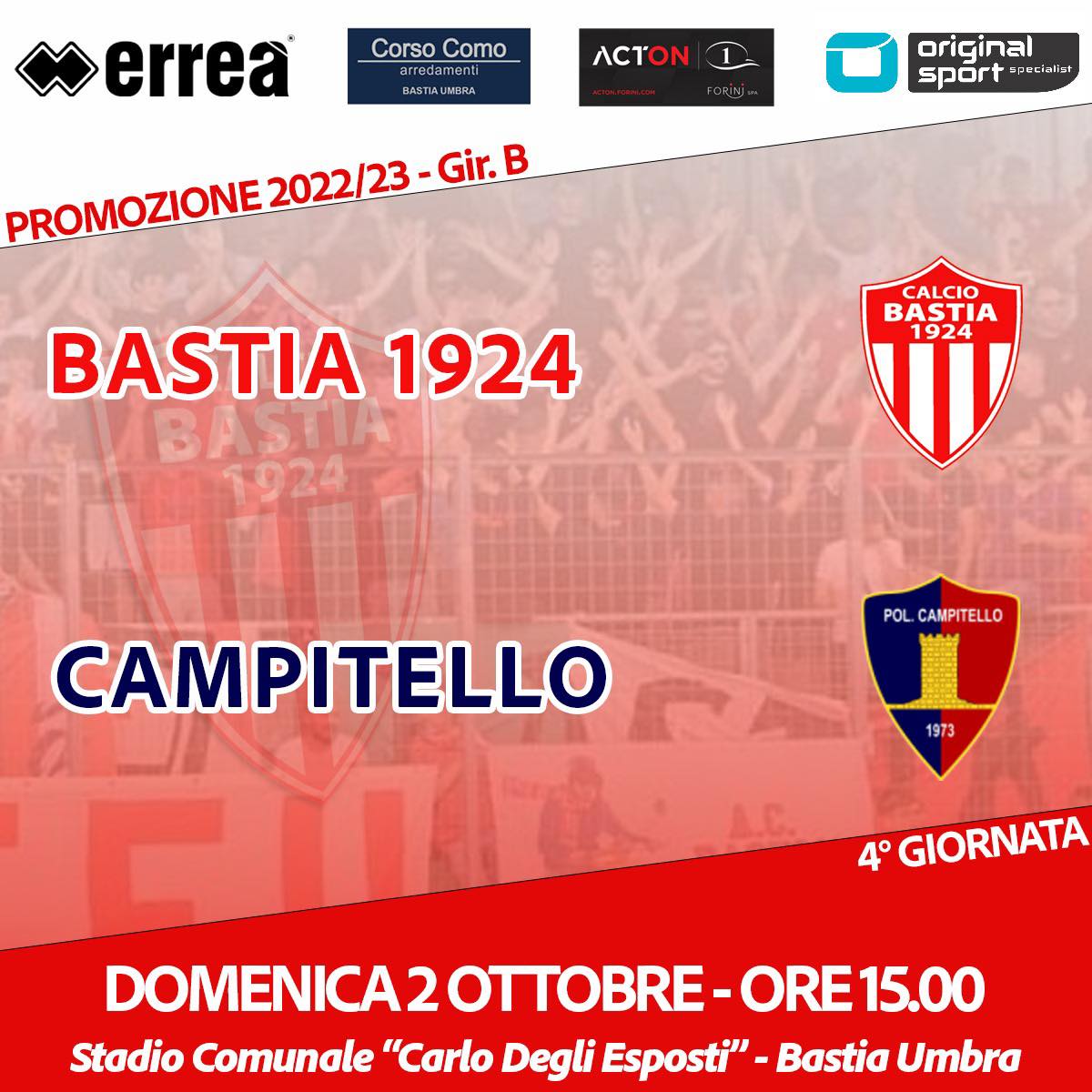Bastia Calcio domenica arriva il Campitello.