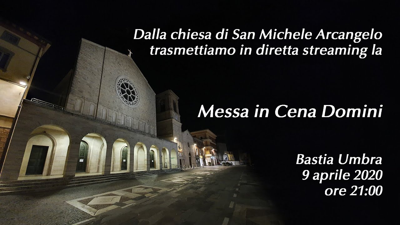 Giovedì 9 aprile 2020 alle ore 21:00, in diretta streaming dalla chiesa di San Michele Arcangelo, i Parroci delle Parrocchie di Bastia Umbra hanno celebrato la Messa in Cena Domini. Programma della funzione: 1. Processione d’ingresso; 2. Il sacerdote va alla sede; 3. Liturgia della parola; 4. Proclamazione del Vangelo; 5. Omelia; 6. Padre Nostro e Comunione; 7. Benedizione finale; …