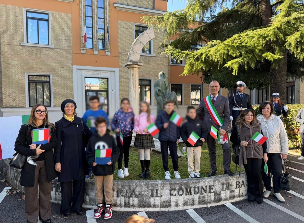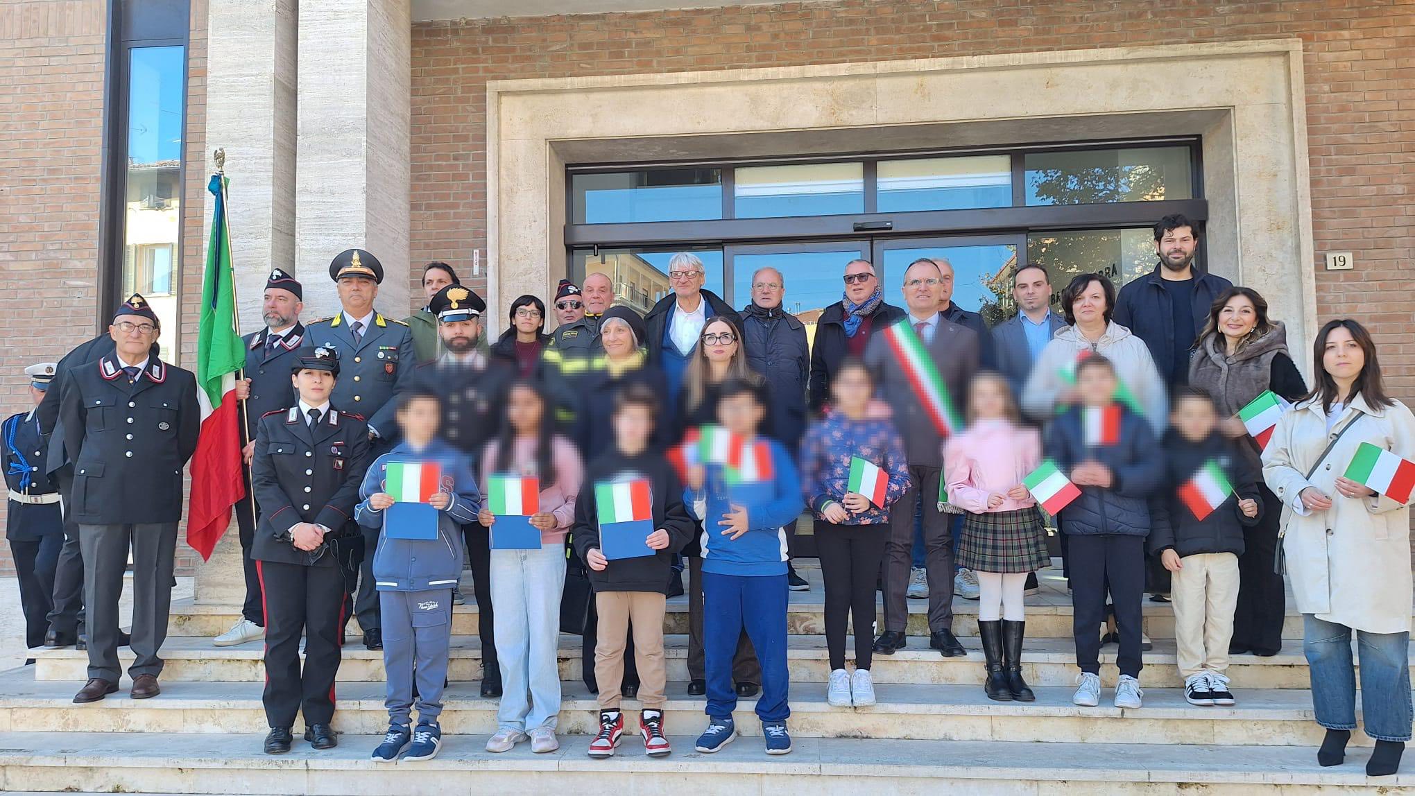 La commemorazione è iniziata vicino al Monumento accanto alla nostra scuola, poi è proseguita in piazza e infine si è conclusa davanti al Municipio.
