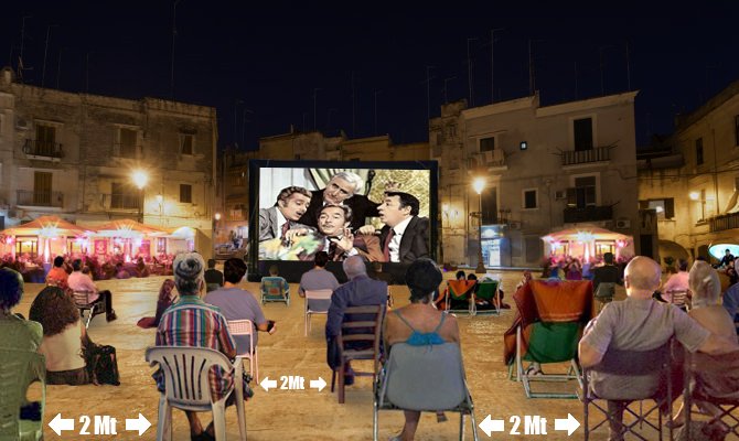 Cinema itinerante: schermo gonfiabile per proiezioni nelle piazze dei centri storici, in parchi e luoghi naturali.