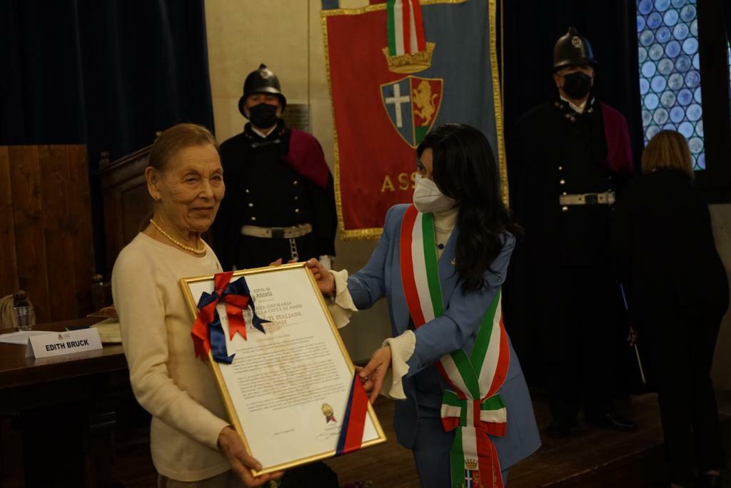 Dopo l’incontro in mattinata al teatro Lyrick con oltre mille studenti che hanno potuto ascoltare la testimonianza di Edith Bruck, la scrittrice ungherese, di origine ebrea, sopravvissuta alla Shoah, e rivolgerle domande su quanto accaduto e provato nei campi di sterminio, nel pomeriggio di ieri l’evento conclusivo per la Giornata europea dei Giusti 2022 nella Sala della Conciliazione, alla presenza delle autorità e della cittadinanza. Qui la scrittrice ha raccontato la sua storia, la deportazione a 13 anni, l’orrore dei campi di concentramento, la disumanizzazione, la forza per andare avanti.Il sindaco Stefania Proietti ha salutato la presenza di Edith Bruck con parole commosse: “Sei una testimone della storia, raccontare la tua vita è un’operazione che aiuta a non perdere la memoria. Oggi hai invitato i ragazzi a non restare indifferenti di fronte a quanto sta accadendo, li hai spronati a scendere in piazza contro la guerra perchè la pace deve essere l’obiettivo di tutti. Ti ringraziamo per essere qui, e il nostro abbraccio te lo abbiamo dato con oltre mille studenti che ti hanno ascoltato con attenzione ed emozione. Ora la Città di Assisi, insignita della Medaglia d’oro al merito civile per aver salvato 300 ebrei durante la seconda guerra mondiale, ti consegna la cittadinanza onoraria per la pace che fu decisa dal consiglio comunale all’unanimità il 14 febbraio del 2020 per tutti i sopravissuti alla Shoah”.