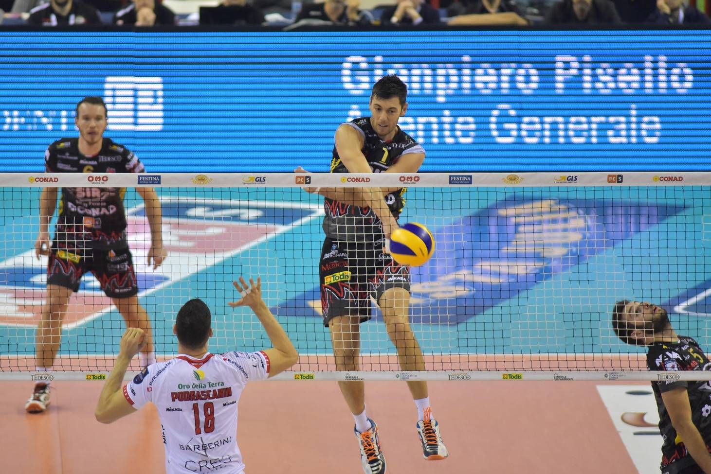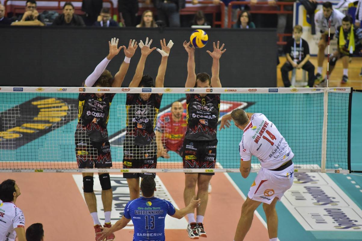 Non bastano ai Block Devils i punti della coppia Atanasijevic-Fromm (30 palloni vincenti in due) perché la Sir Conad fatica al servizio e soprattutto non riesce a capitalizzare nelle fasi concitate del secondo e terzo parziale il buon lavoro della seconda linea in difesa mancando alcuni contrattacchi che avrebbero potuto dare un’altra piega al match. Castellani nella terza frazione ha provato anche la carta Russell al posto di Kaliberda, ma sul 21-21 è risultato decisivo il break firmato Juantorena e capitalizzato poi dal muro di Stankovic che ha chiuso la gara.