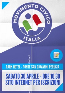 Claudio Ricci presenterà, unitamente ai componenti della rete del “movimento civico Italia” (nato dopo l’esperienza delle elezioni regionali 2015 ove ha attenuto il 13% dei consensi), sabato prossimo 30 aprile 2016 alle ore 10.30 (Park Hotel in Ponte San Giovanni) il nuovo sito internet www.movimentocivicoitalia.it.