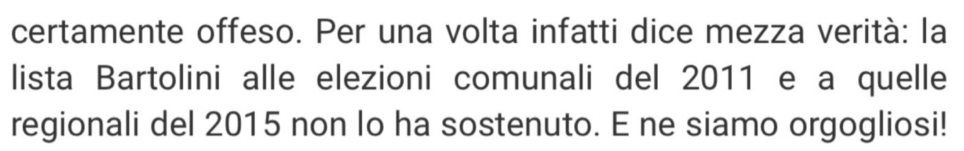 Claudio Ricci (che con le liste civiche e i partiti di centro destra ha “sfiorato il miracolo” alle elezioni regionali 2015: ad Assisi ha attenuto il 52.5% dei consensi con il 30% sulle liste civiche) prende atto di una “decisione discutibile” sulla quale non è stato neanche sentito (ovviamente si intuisce che si tratta di un tentativo di “ingabbiare il cambiamento”).Noi, con la ormai ampia rete civica regionale e di Assisi, continueremo “dal basso e con la gente” (anziché con i “tavoli politici”) a costruire il cambiamento con un candidato Sindaco nuovo ma anche di esperienza, in Comune nonché imprenditoriale come Patrizia Buini, che, insieme a tanti giovani e persone impegnate nella società civile, vuole con “autentica generosità” impegnarsi per il “bene comune” di tutti.