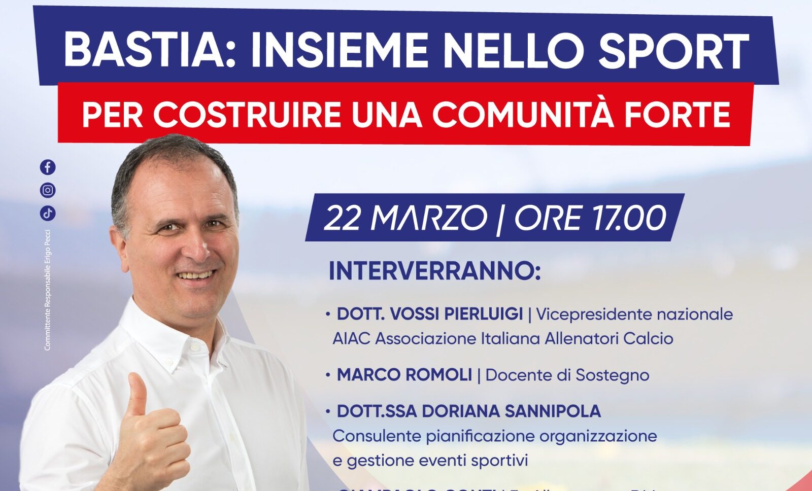 La Coalizione Civico Progressista di Bastia invita tutti i cittadini a partecipare a questo momento di riflessione straordinario e a condividere le proprie idee per una comunità più sana, inclusiva e prospera attraverso lo sport.
