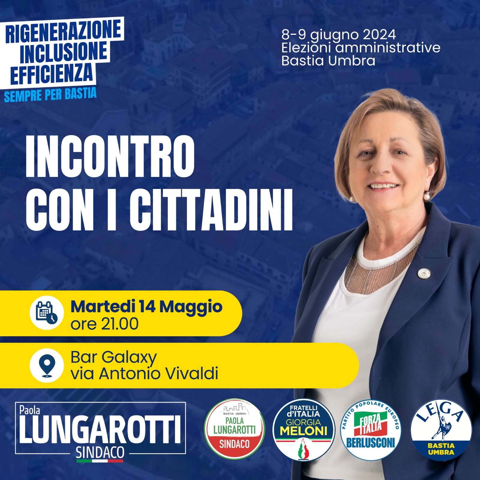 Continuano gli incontri nei quartieri e nelle frazioni, organizzati dalla coalizione dei partiti e delle liste civiche di centro destra a sostegno della candidatura di Paola Lungarotti Sindaco.