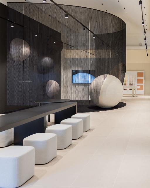 Lo showroom si estende su una superficie di 200 mq: ospita la nuovissima Interior Collection, dedicata all’Interior design. Si compone di 185 tinte che spaziano dalla morbidezza di colori neutri a toni più decisi e saturi, seguendo l’evoluzione del gusto cromatico contemporaneo.