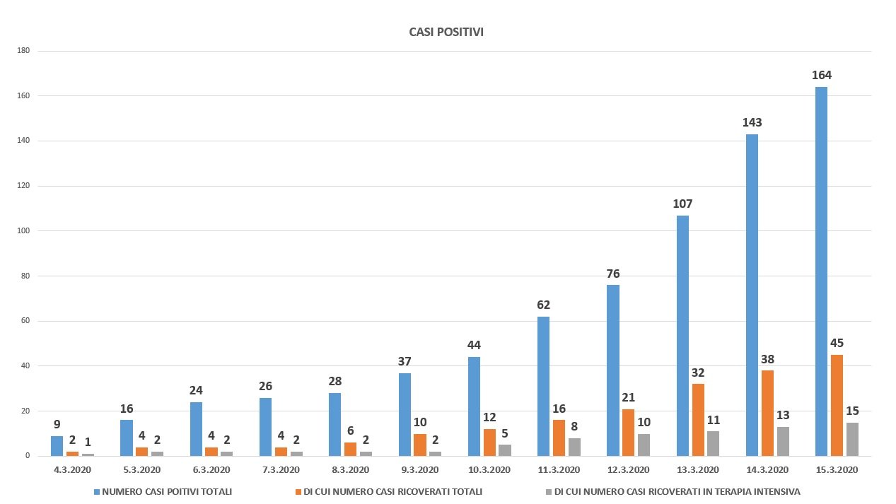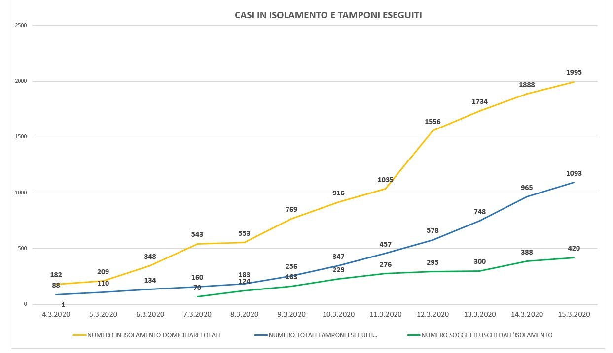 REGIONE UMBRIA – Dai dati aggiornati alla mezzanotte del 15 marzo, 164 persone in Um