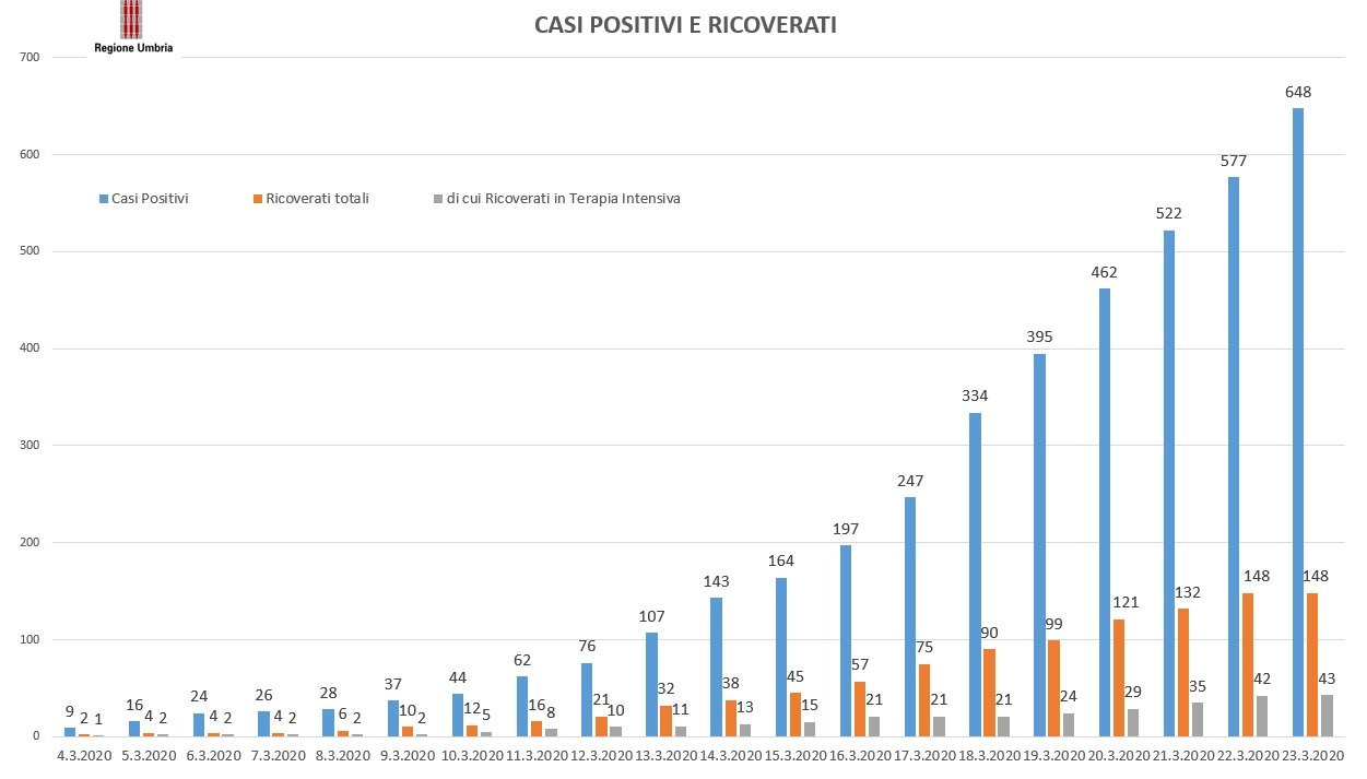 Coronavirus, dati aggiornati al 24 marzo della Regione Umbria