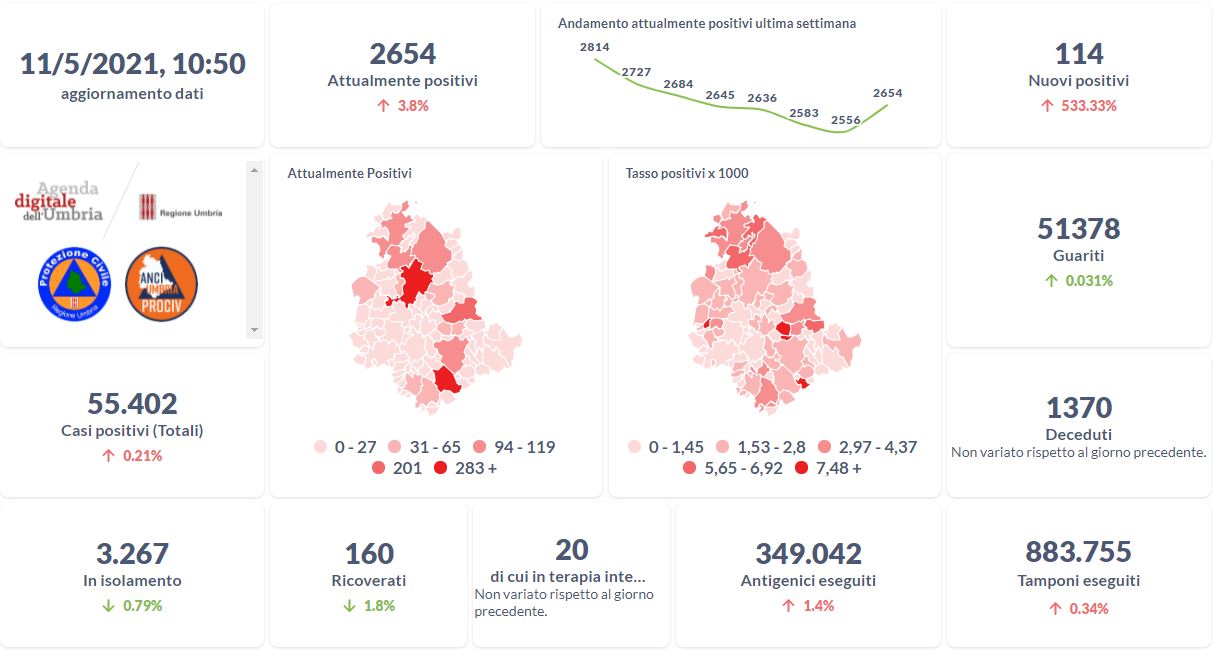 VISUALIZZA LA DASHBOARD COMPLETA della REGIONE UMBRIA > https://coronavirus.regione.umbria.it/