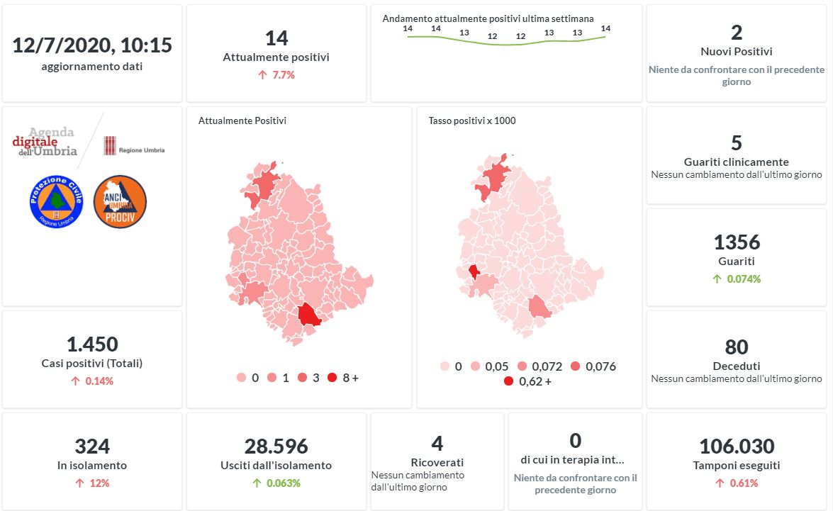 Coronavirus, i dati aggiornati al 12 luglio della Regione Umbria.