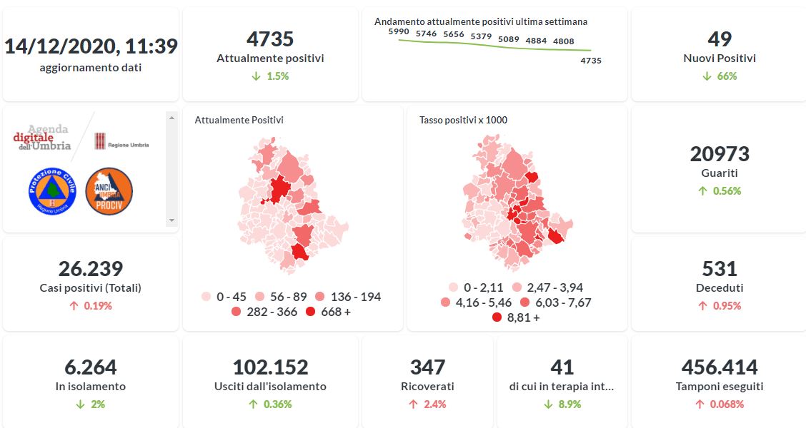 Coronavirus, i dati aggiornati al 14 dicembre della Regione Umbria.