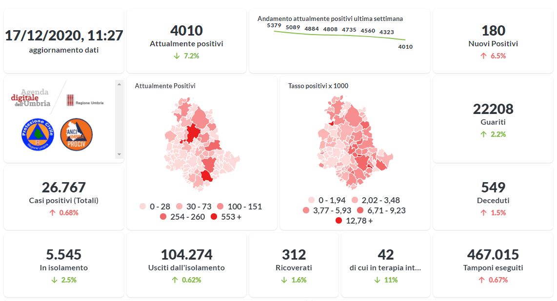 Coronavirus, i dati aggiornati al 17 dicembre della Regione Umbria.