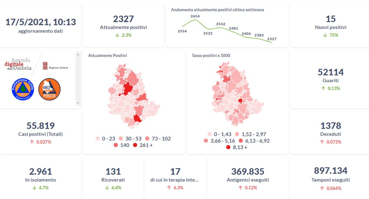 VISUALIZZA LA DASHBOARD COMPLETA della REGIONE UMBRIA > https://coronavirus.regione.umbria.it/