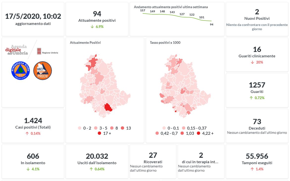 VISUALIZZA LA DASHBOARD COMPLETA della REGIONE UMBRIA > https://coronavirus.regione.umbria.it