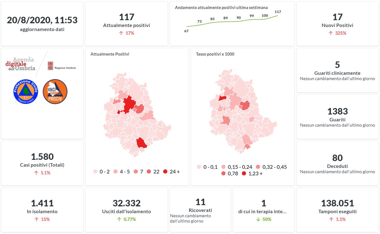 VISUALIZZA LA DASHBOARD COMPLETA della REGIONE UMBRIA > https://coronavirus.regione.umbria.it
