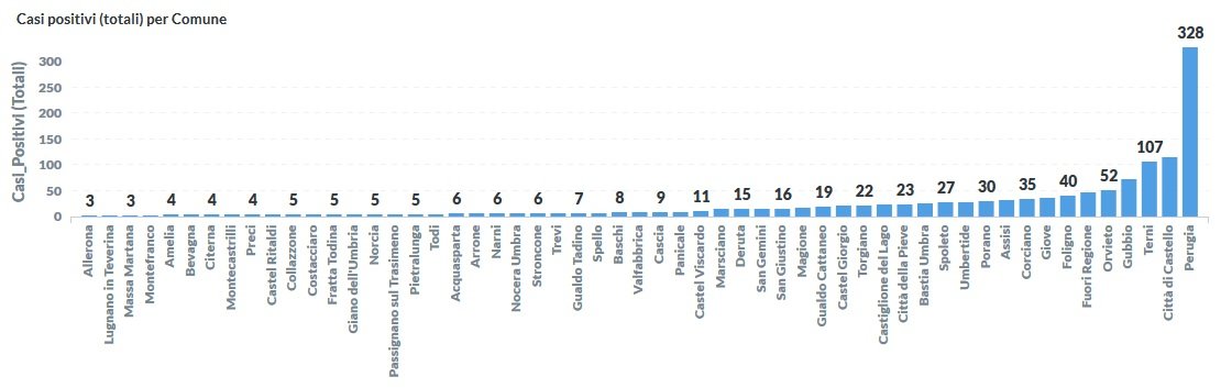 A Bastia Umbra i pazienti positivi fino ad oggi al Coronavirus sono 25 (di cui 22 guariti), ad Assisi 32 (di cui 20 guariti), a Spello 7 (di cui 3 guariti), a Bettona 2 (di cui entrambi guariti).
