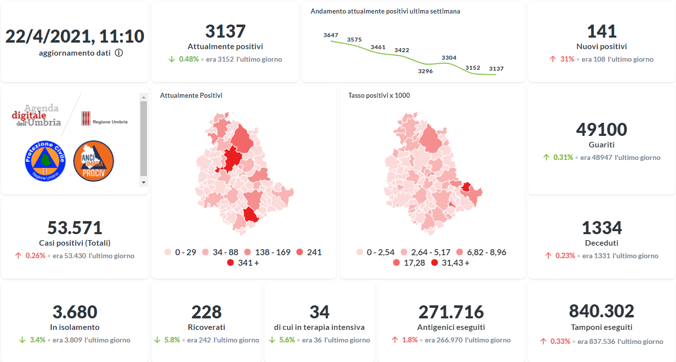 VISUALIZZA LA DASHBOARD COMPLETA della REGIONE UMBRIA > https://coronavirus.regione.umbria.it/