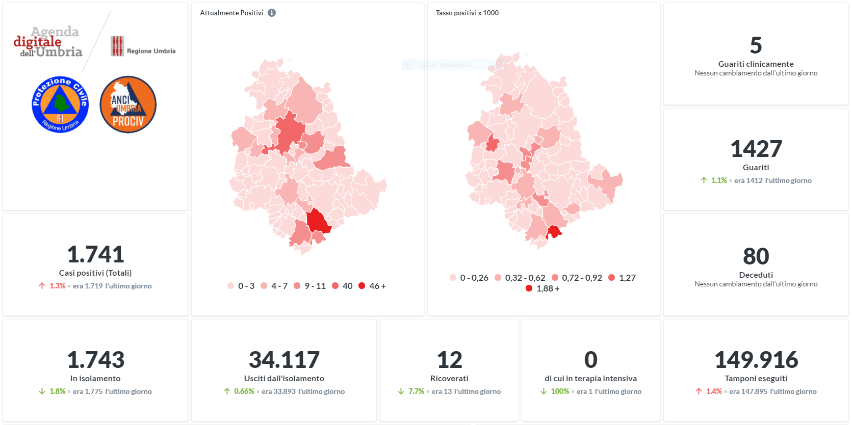 VISUALIZZA LA DASHBOARD COMPLETA della REGIONE UMBRIA > https://coronavirus.regione.umbria.it