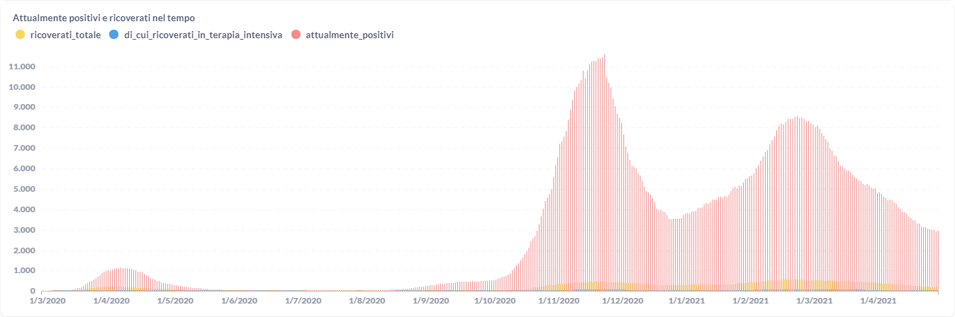 La curva degli attualmente positivi al Covid-19 in Umbria sta lentamente scendendo negli u
