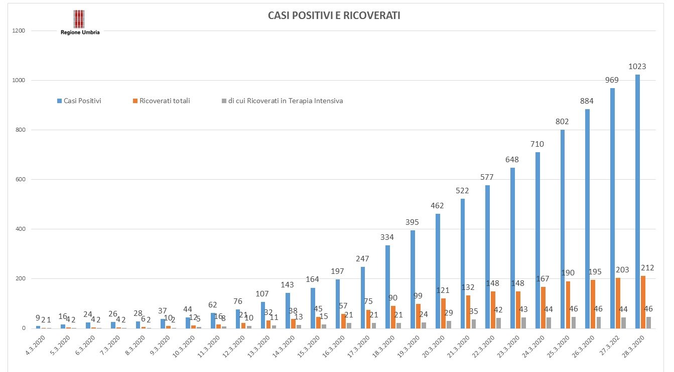 1023 i pazienti risultati positivi in Umbria (+54 casi rispetto a ieri).