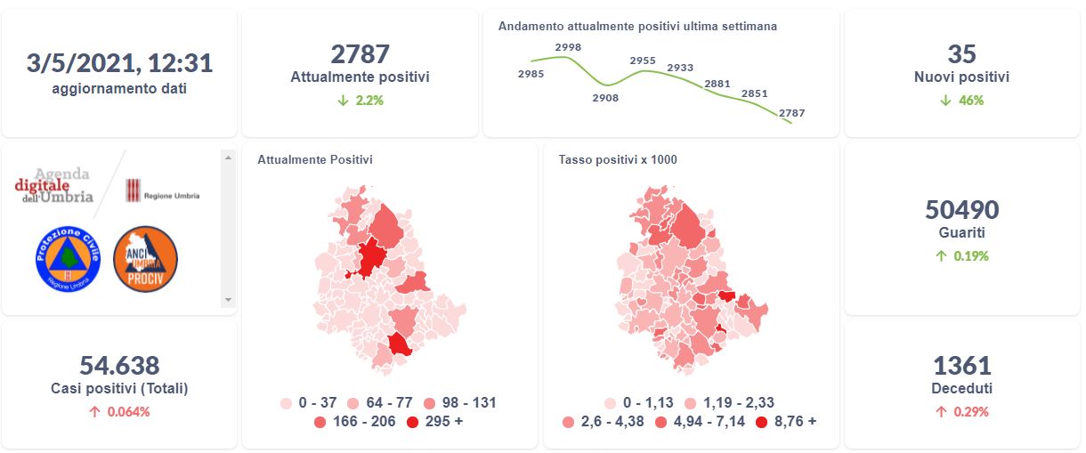 VISUALIZZA LA DASHBOARD COMPLETA della REGIONE UMBRIA > https://coronavirus.regione.umbria.it/