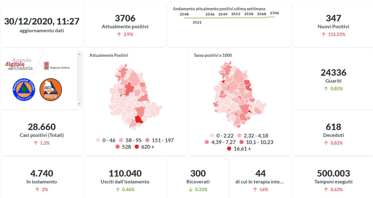 Coronavirus, i dati aggiornati al 30 dicembre della Regione Umbria.