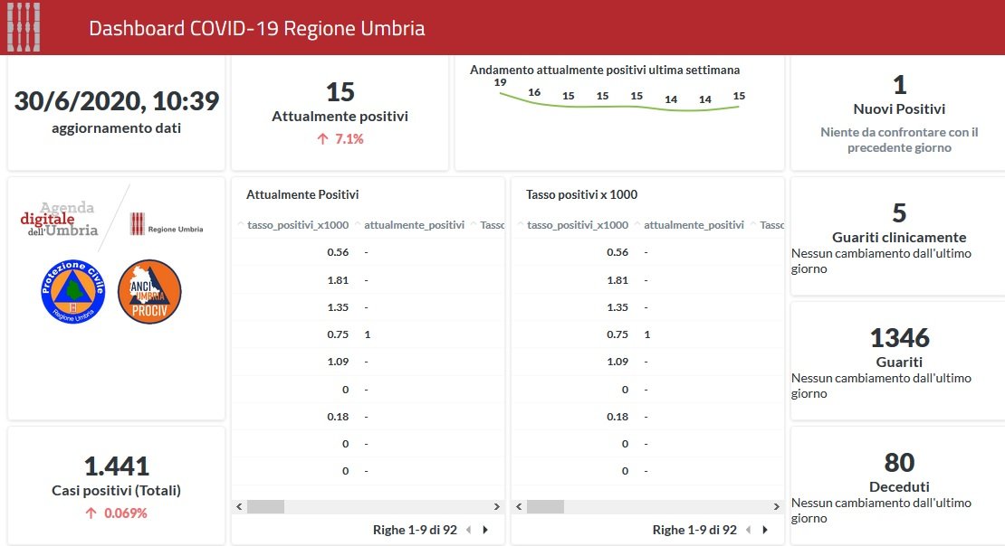 VISUALIZZA LA DASHBOARD COMPLETA della REGIONE UMBRIA > https://coronavirus.regione.umbria.it