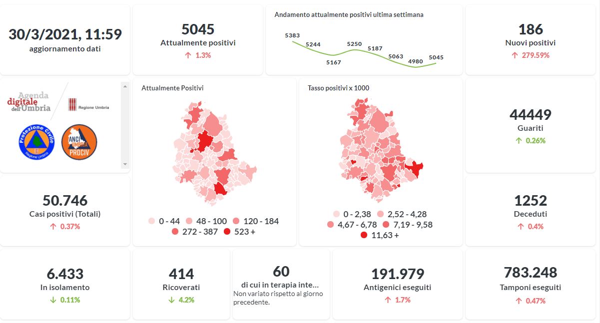 VISUALIZZA LA DASHBOARD COMPLETA della REGIONE UMBRIA > https://coronavirus.regione.umbria.it/