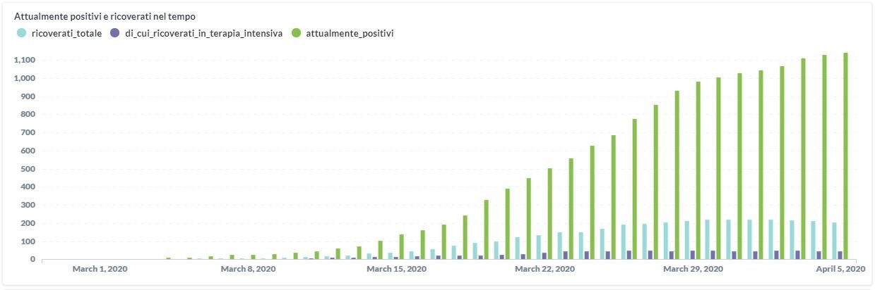 Sono ricoverati in 204 (in lieve calo rispetto a ieri), di cui 45 (+2 rispetto a ieri) sono in terapia intensiva. Al momento le persone in isolamento sono 4576 (+41 rispetto a ieri) in totale e 5415 (+248) quelle uscite dall’isolamento.