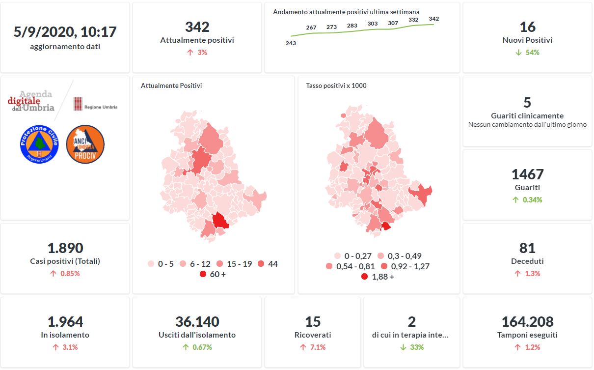 Coronavirus, i dati aggiornati al 5 settembre della Regione Umbria.