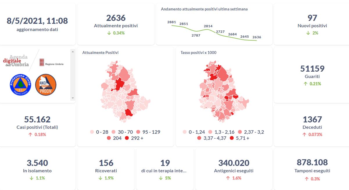 Coronavirus, i dati aggiornati al 8 maggio della Regione Umbria.