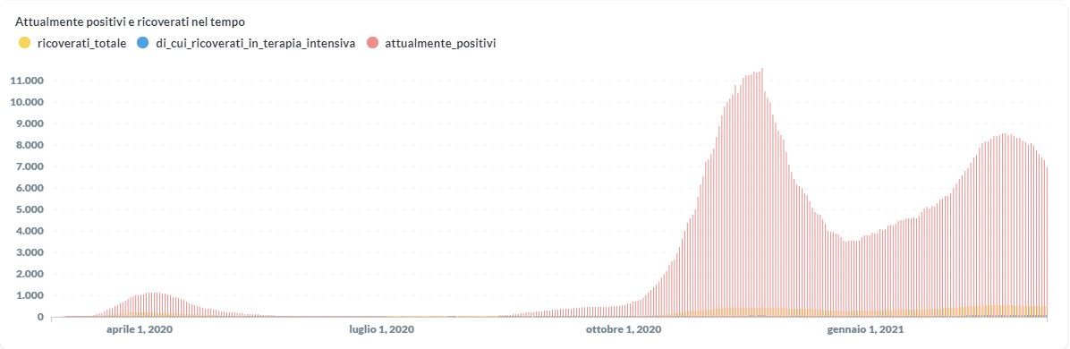 La curva degli attualmente positivi al Covid-19 in Umbria sta lentamente scendendo negli ultimi giorni. Dai dati aggiornati alle ore 13:06 di oggi 8 marzo, 46.481 persone in Umbria risultano in totale positive al virus (+ 42 rispetto a ieri) , gli attualmente positivi sono 6.955 (-324 rispetto a ieri), i guariti sono 38.416 (+356 rispetto a ieri).