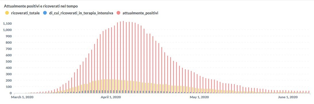 Sono 12 i ricoverati di cui solo 2 in terapia intensiva (uguale a ieri).