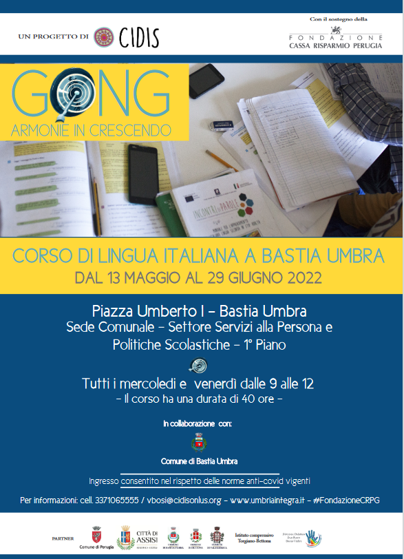 Nella sede comunale, in Piazza Umberto I, al piano primo, Settore Servizi alla Persona e Politiche scolastiche, tutti i mercoledì e venerdì dalle 9.00 alle 12.00 un corso di lingua italiana della durata complessiva di 40 ore, progetto di CIDIS onlus con il sostegno della Fondazione Cassa di Risparmio di Perugia. Il corso è rivolto prevalentemente alla popolazione ucraina presente nel nostro territorio.