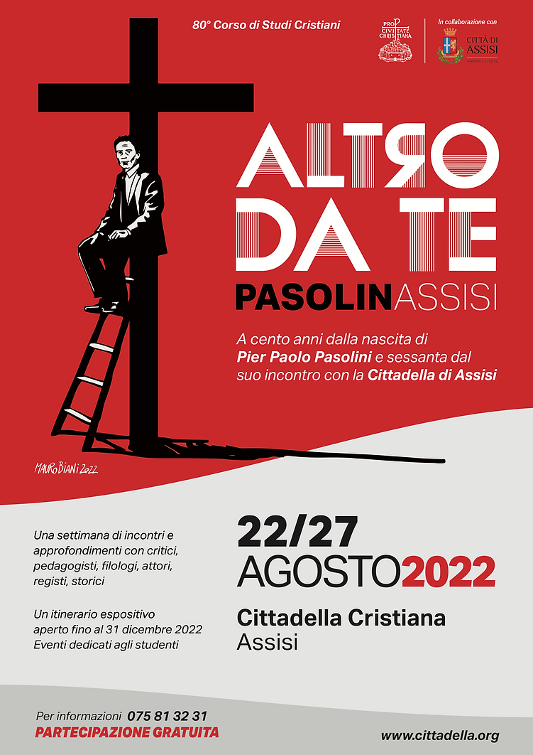 Il programma, che si può vedere sul sito www.cittadella.org, è ricco di interventi qualificati che rendono questo evento unico nel panorama delle molteplici iniziative di celebrazione del centenario della nascita del genio friulano. L’assessora alla cultura, ha fatto eco alle dichiarazioni del sindaco impegnando l’amministrazione comunale a rendere questo appuntamento annuale perché “sempre di più Assisi venga riconosciuta città pasoliniana come Casarsa, Bologna, Roma e Matera”. Dal canto suo Tonio Dell’Olio, presidente della Pro Civitate Christiana, rimarca “l’azzardo di quell’incontro tra Pasolini e don Giovanni Rossi in un tempo di forte contrapposizioni ideologiche: fu proprio grazie a quella scommessa che nacque un capolavoro cinematografico come Il Vangelo secondo Matteo e una stima che ha generato un vero e proprio cammino culturale dell’anima”. A riflettere su Pasolini dal 22 al 27 agosto ci saranno tra gli altri il Card. Matteo Zuppi, presidente della Cei e arcivescovo di Bologna, Ascanio Celestini, Ivano Dionigi, già magnifico rettore dell’Alma Mater, Roberto Mancini, Goffredo Fofi, Francesca Tuscano, Roberto Chiesi e l’eminente filologo Franco Zabagli. La sessione autunnale vedrà la presenza di Dacia Maraini, Giovanna Marini e Franco Lorenzoni. A tutti sarà offerta la possibilità di sperimentare un itinerario espositivo tra le testimonianze della presenza di Pier Paolo Pasolini in Assisi e della sua frequentazione feconda della Biblioteca, dell’archivio, della Galleria d’arte e della Fonoteca della Cittadella. In particolare saranno i giovani delle scuole di Assisi e d’Italia in visita di istruzione fino al 31 dicembre prossimo a fare questa esperienza di immersione nel mondo di Pasolini. Pezzo forte del percorso, il testo originario della sceneggiatura de Il Vangelo secondo Matteo con le interessanti annotazioni a margine.