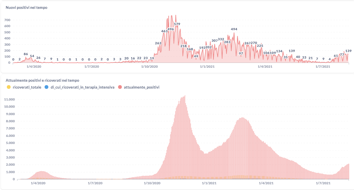 La curva degli attualmente positivi al Covid-19 in Umbria sta lentamente risalendo negli ultimi giorni.