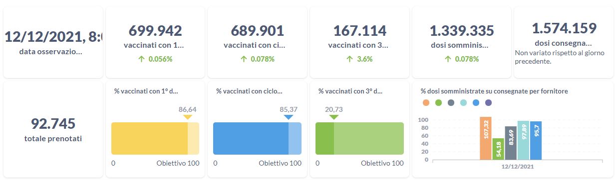 Dai dati aggiornati alle ore 09:42 di oggi 12 dicembre, 69.197 persone in Umbria risultano in totale positive al virus (+157 rispetto a ieri), gli attualmente positivi sono 2.343 (+64 rispetto a ieri), i guariti sono 65.358 (+92 rispetto a ieri).