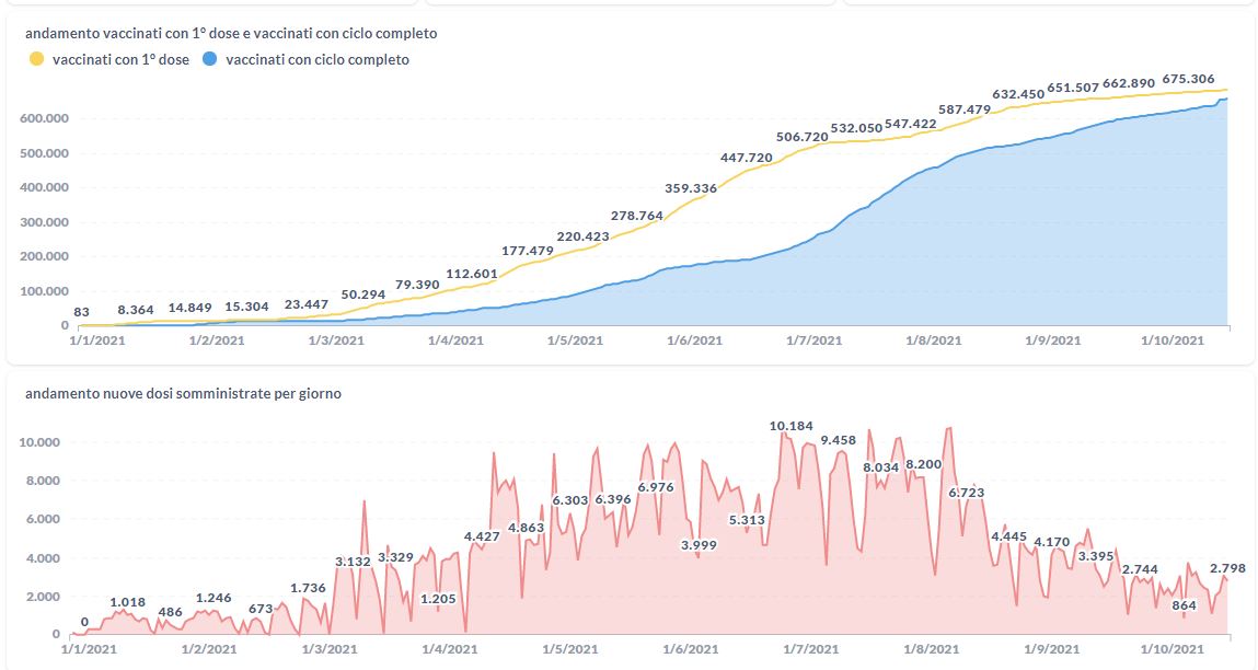 Covid-19 e vaccini, i dati aggiornati al 15 ottobre della Regione Umbria.