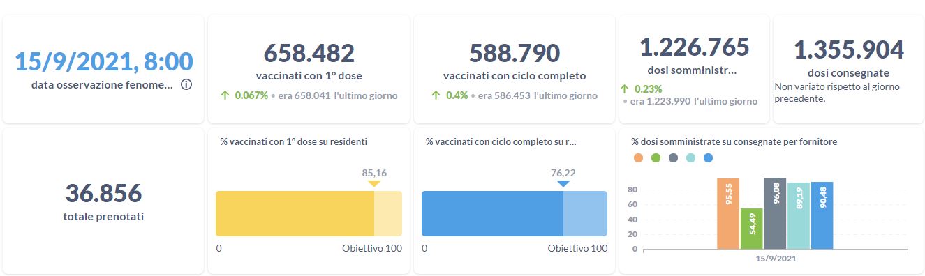 Covid-19 e vaccini, i dati aggiornati al 15 settembre della Regione Umbria.