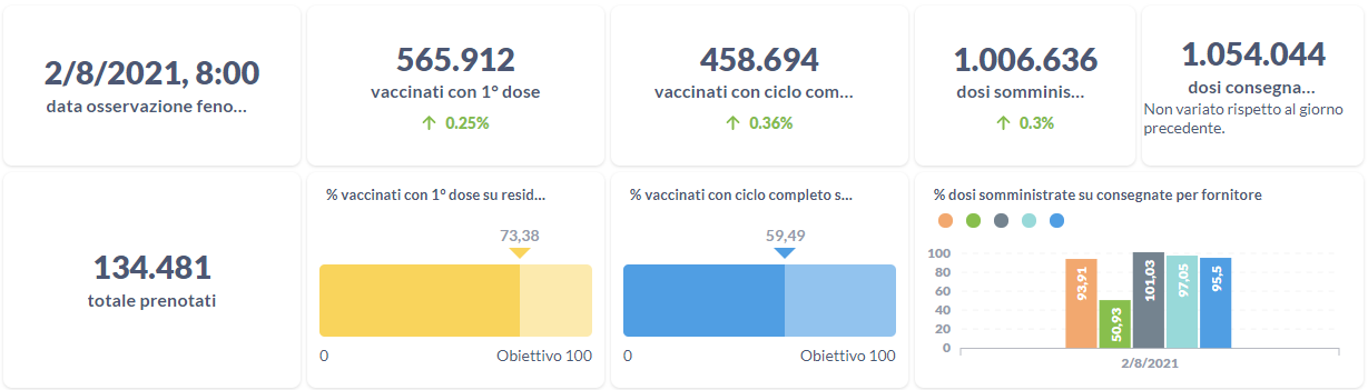 Covid-19 e vaccini, i dati aggiornati al 2 agosto della Regione Umbria.