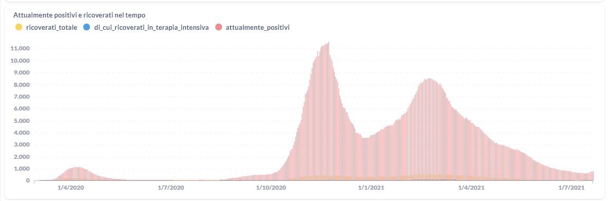 La curva degli attualmente positivi al Covid-19 in Umbria sta lentamente risalendo negli ultimi giorni.