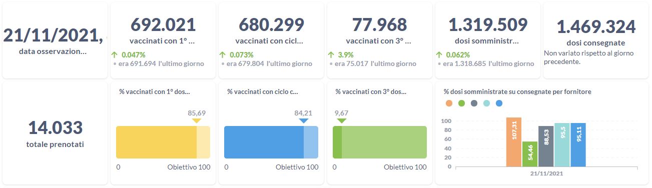 Covid-19 e vaccini, i dati aggiornati al 21 novembre della Regione Umbria.