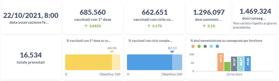 Covid-19 e vaccini, i dati aggiornati al 22 ottobre della Regione Umbria.