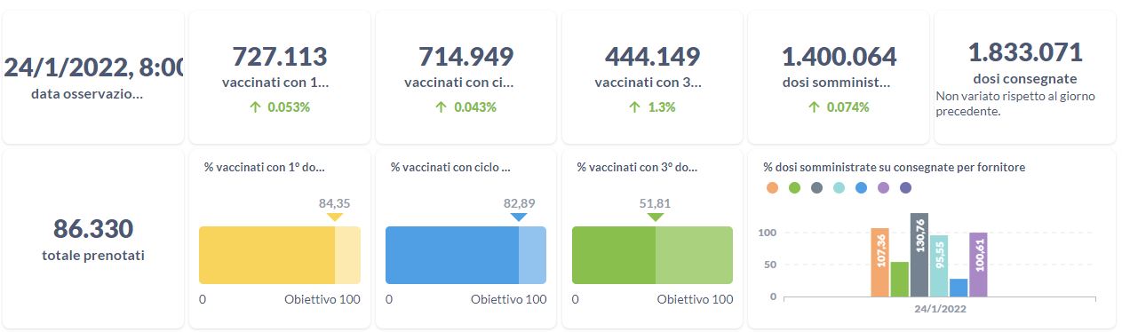 Covid-19 e vaccini, i dati aggiornati al 24 gennaio della Regione Umbria.