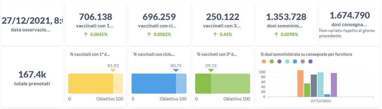 Dai dati aggiornati alle ore 11:03 di oggi 27 dicembre, 77.032 persone in Umbria risultano in totale positive al virus (+935 rispetto a ieri), gli attualmente positivi sono 8.507 (+886 rispetto a ieri), i guariti sono 67.024 (+49 rispetto a ieri).