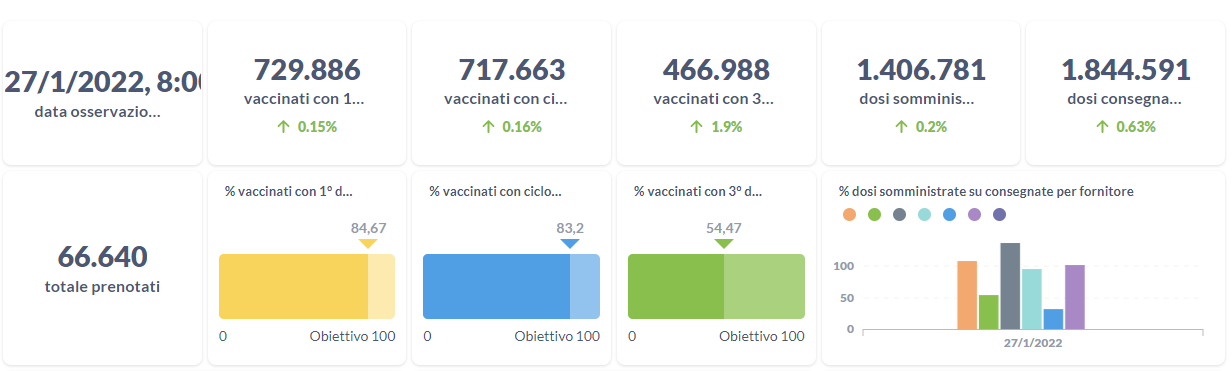 Covid-19 e vaccini, i dati aggiornati al 27 gennaio della Regione Umbria.