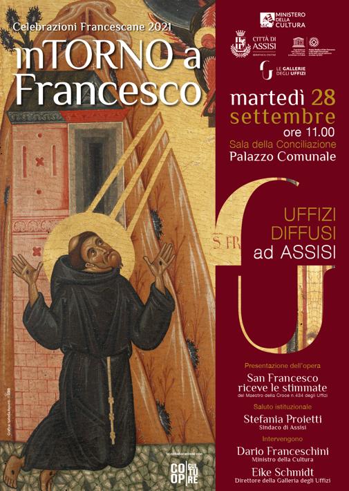 L’esposizione “inTORNO a Francesco” nasce nei mesi scorsi dalla felice collaborazione del Comune di Assisi con le Gallerie degli Uffizi nell’ambito del progetto “Uffizi diffusi” e vuole essere un omaggio alla Città Serafica in vista delle celebrazioni francescane 2021. In particolare viene concesso il prestito di una delle opere più preziose del repertorio figurativo francescano degli Uffizi e soprattutto raramente prestate ad altre istituzioni museali.