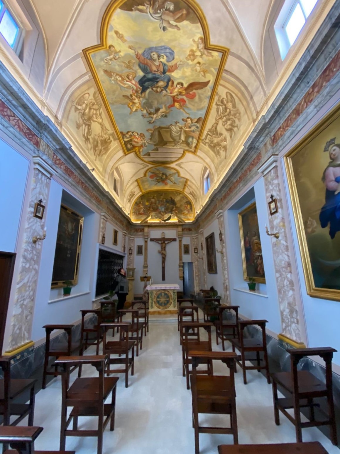 Il Monastero delle Minime Paolane si trova nel pieno centro di Todi, accanto alla Rocca. Si estende su un terreno che, all’epoca della fondazione, comprendeva due case acquistate dalla famiglia Atti per 250 scudi. La sua posizione è legata a un contesto urbano di rilevanza storica, benché il monastero e la sua chiesa mantengano un certo distacco dal centro, immersi in un ambiente spirituale e architettonico significativo. Fondato nel 1746 dalla serva di Dio Suor Maria Maddalena del Crocifisso (Ersilia Foschi Bolognini), il monastero delle Terziarie Minime di San Francesco di Paola segna l’inizio della vita monastica delle Minime Paolane a Todi. Il Monastero presenta uno stile architettonico sobrio e funzionale, tipico dei conventi dedicati alla clausura e alla preghiera. L’esterno della chiesa è caratterizzato da un portale decorato con motivi marini: delfini con le code intrecciate e un tridente. All’interno, la chiesa ha una navata unica coperta da una volta a botte. La decorazione della volta centrale, che rappresenta l’Assunzione della Vergine, e la lunetta sopra l’altare maggiore con la Vergine incoronata dalla Trinità, completano il panorama artistico, rendendolo un esempio significativo di arte sacra settecentesca. Visite a cura degli Apprendisti Ciceroni dell’Istituto Superiore “Ciuffelli-Einaudi” di Todi (PG).
