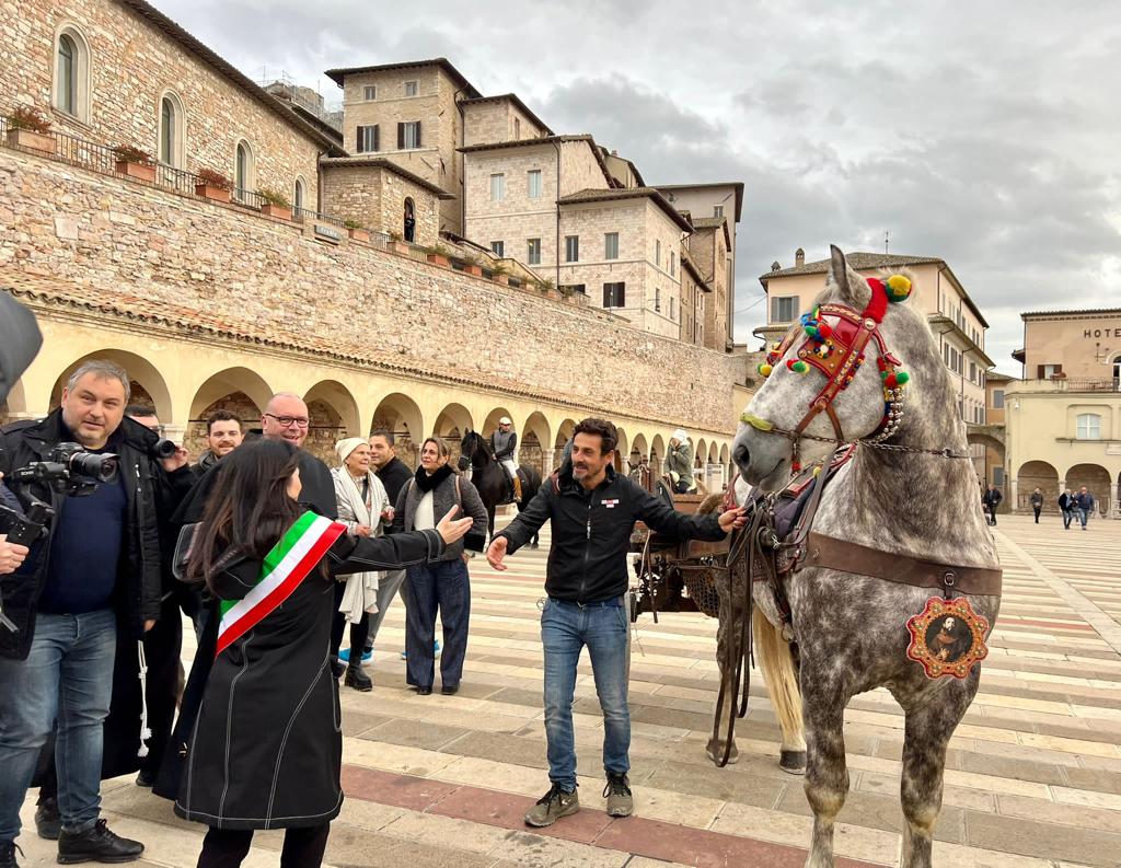 È partito dalla Sicilia il 4 ottobre scorso, attraversando mezza Italia a piedi insieme al cavallo Gandalf, per arrivare ad Assisi dopo due mesi e ringraziare San Francesco dopo aver superato le difficoltà legate al Covid. È la storia di Nino Buttitta, 44 anni, ristoratore di Bagheria, in provincia di Palermo, che ha percorso circa 1.300 chilometri in circa due mesi, camminando fianco a fianco con il suo stallone grigio, che lo ha accompagnato in questa avventura trainando un carretto siciliano, con alcuni beni di prima necessità. Un pellegrinaggio che si è concluso oggi davanti alla Basilica di San Francesco, dove l’uomo è stato accolto dal sindaco di Assisi, Stefania Proietti, dal custode del Sacro Convento, padre Marco Moroni, e da diversi sostenitori che lo hanno raggiunto anche dalla Sicilia.